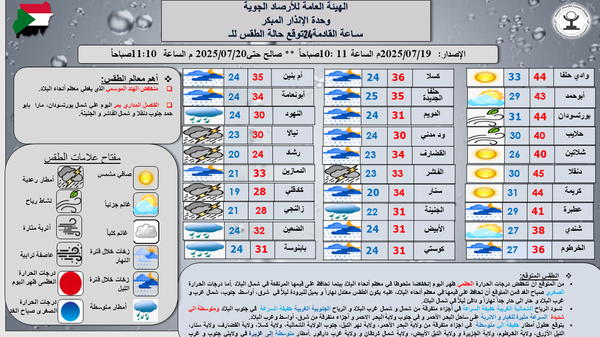- 🌡️ أدنى درجة حرارة صباح اليوم: 19.6°م في سنار وكادقلي