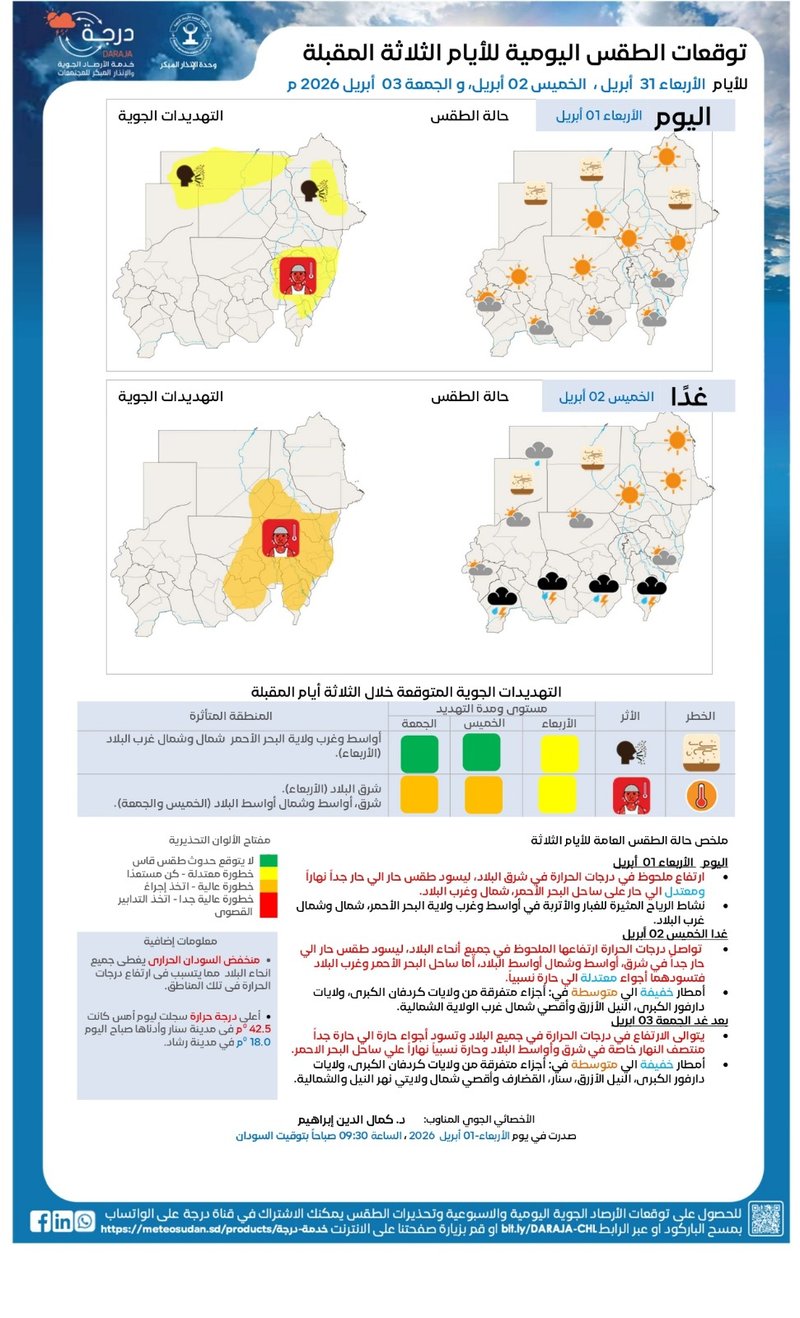 🕘 الأربعاء 01 أبريل 2026 م – الساعة 09:30 بتوقيت السودان