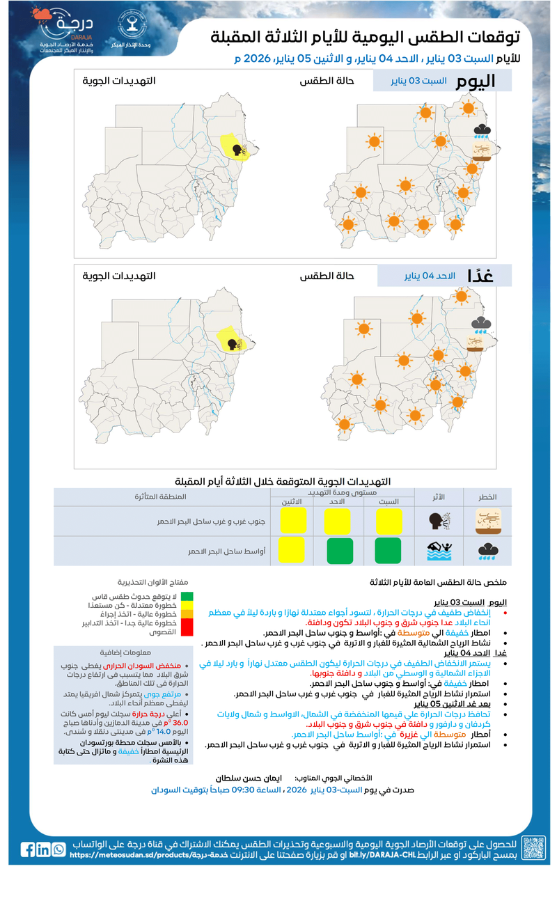 🕘السبت 03 يناير 2026 م – الساعة 09:30 بتوقيت السودان