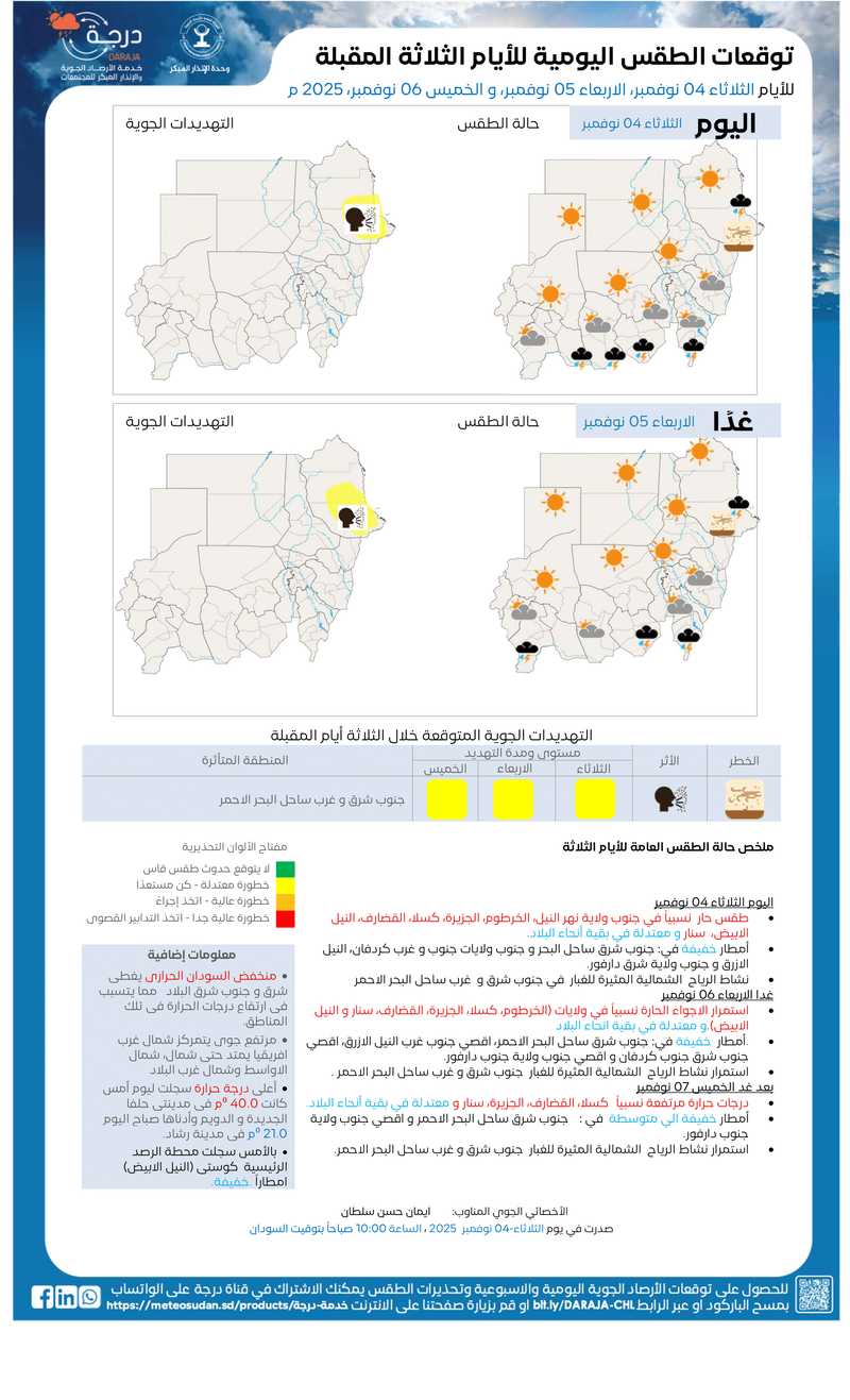 🕘الثلاثاء 04 نوفمبر 2025 – الساعة 10:00 بتوقيت السودان