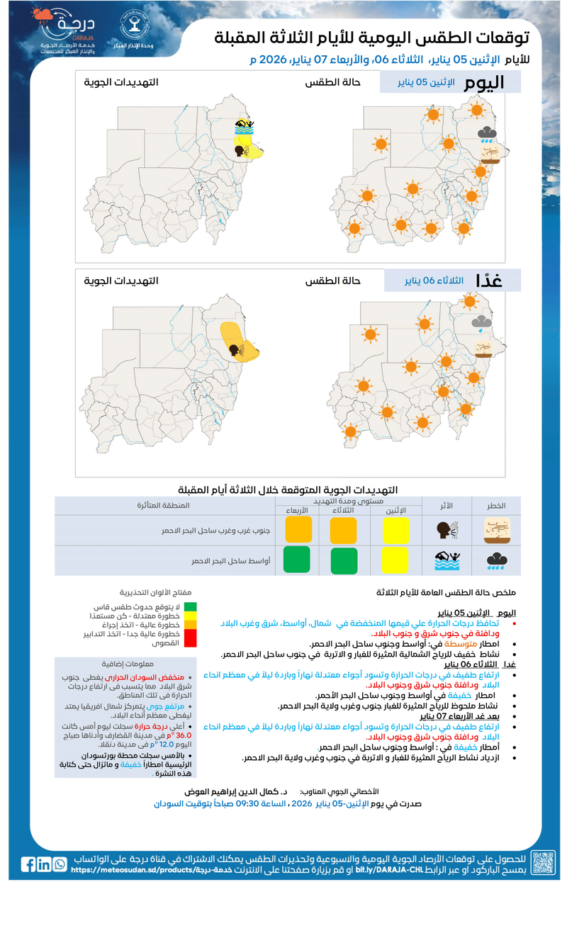 🕘 الإثنين 05–يناير 2026 م – الساعة 09:30 بتوقيت السودان