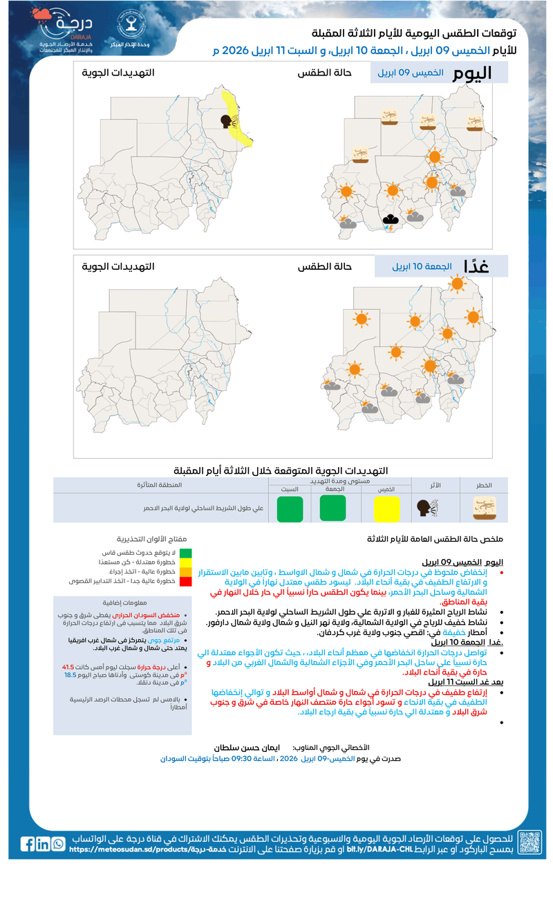 🕘الخميس 09 ابريل 2026 م – الساعة 09:30 بتوقيت السودان
