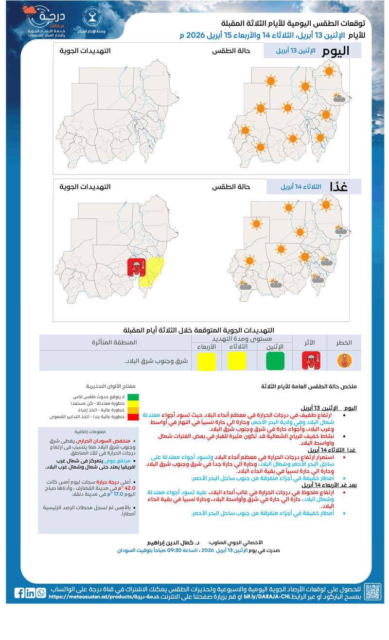 🕘 ا الإثنين 13 أبريل 2026 م – الساعة 09:30 بتوقيت السودان