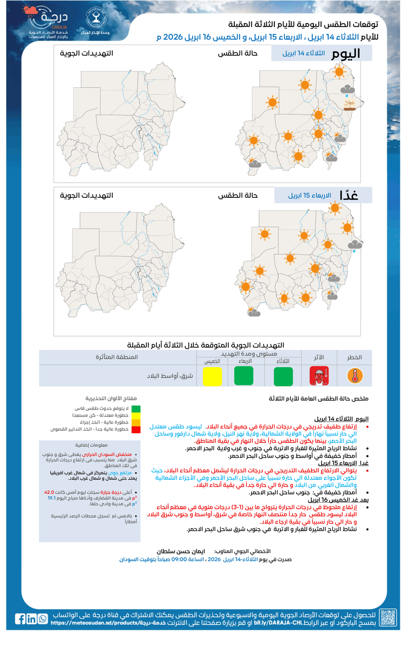 🕘الثلاثاء 14 ابريل 2026 م – الساعة 09:00 بتوقيت السودان