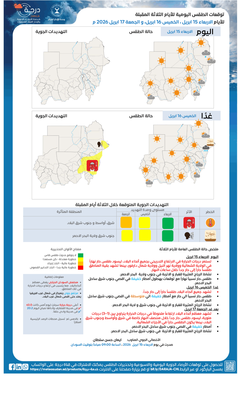 🕘الاربعاء 15 ابريل 2026 م – الساعة 09:00 بتوقيت السودان