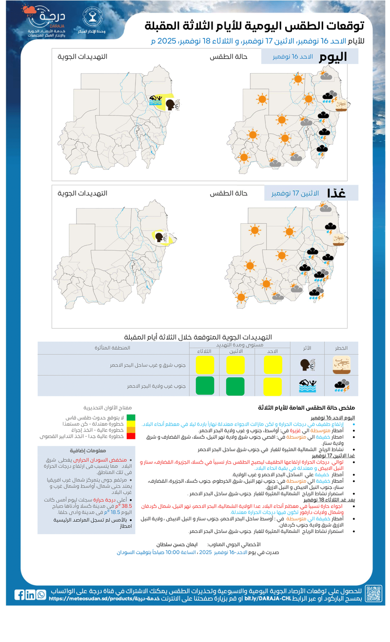 و ايضاً عبر منصات الهيئة العامة للأرصاد الجوية السودانية: