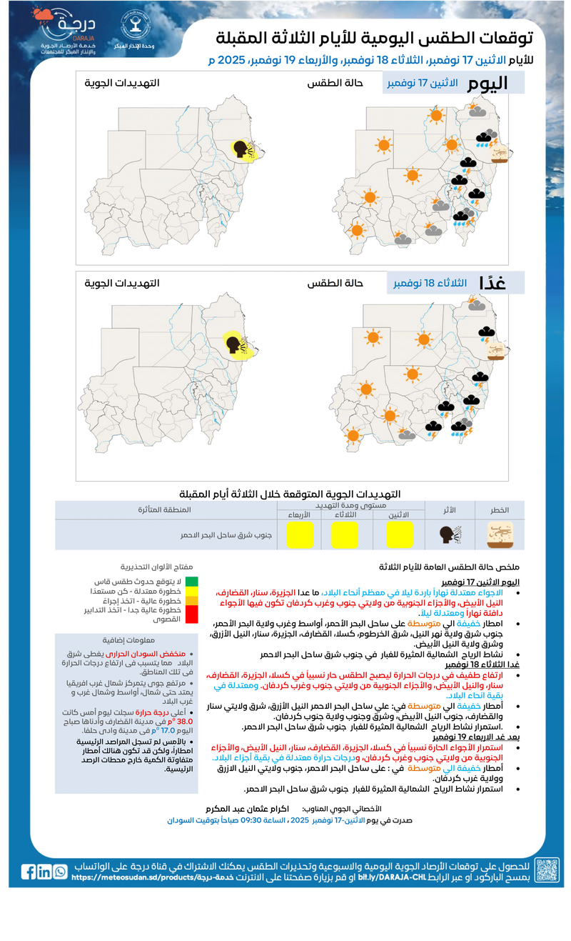 توقعات احوال الطقس اليومية في الفترة من (17-19) نوفمبر 2025 م