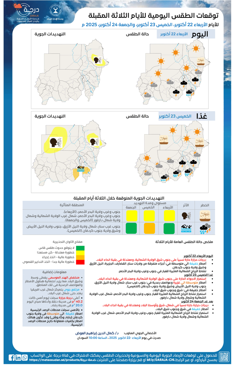 توقعات احوال الطقس اليومية في الفترة من (22-24) اكتوبر 2025 م