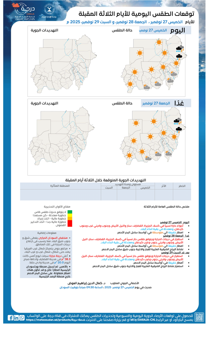 الخميس 27 نوفمبر 2025 – الساعة 09:30 بتوقيت السودان