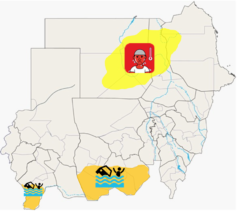 🌡️درجات حرارة مرتفعة نسبياً في غرب ولاية البحر الأحمر، جنوب وأواسط نهر النيل، وجنوب شرق الولاية الشمالية.