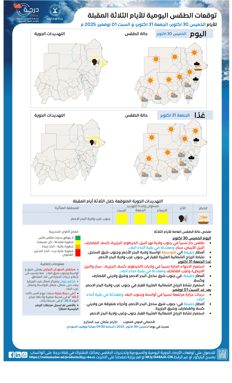 🕘الخميس 30اكتوبر 2025 – الساعة 09:30 بتوقيت السودان