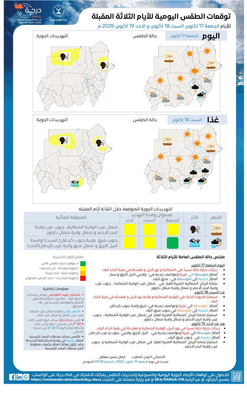 توقعات احوال الطقس اليومية في الفرة من (17-19) اكتوبر 2025 م
