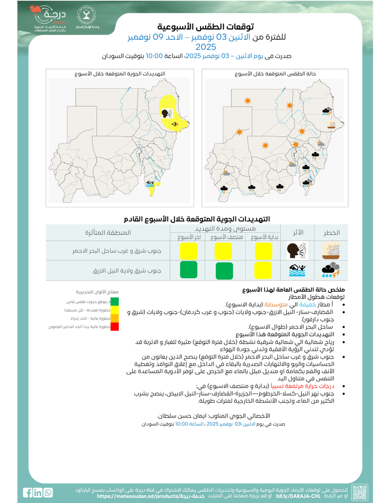 التوقعات الاسبوعية لاحوال الطقس في الفترة من (03-09) نوفمبر 2025م