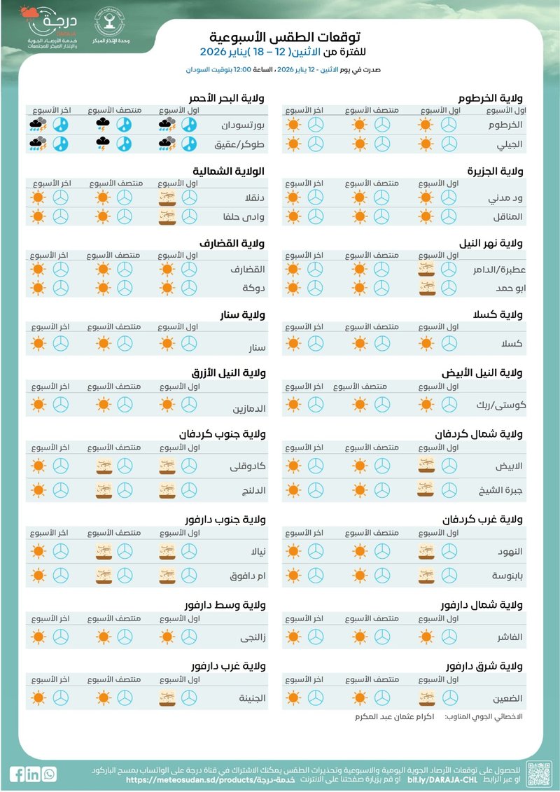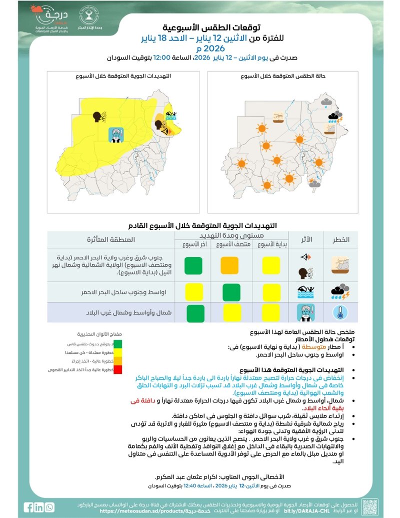🕘 يوم الاثنين 12 يناير 2026، الساعة 12:00 بتوقيت السودان