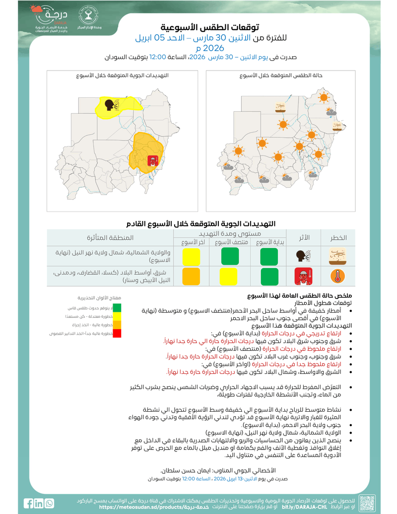 أصدرتها الهيئة العامة للأرصاد الجوية السودانية