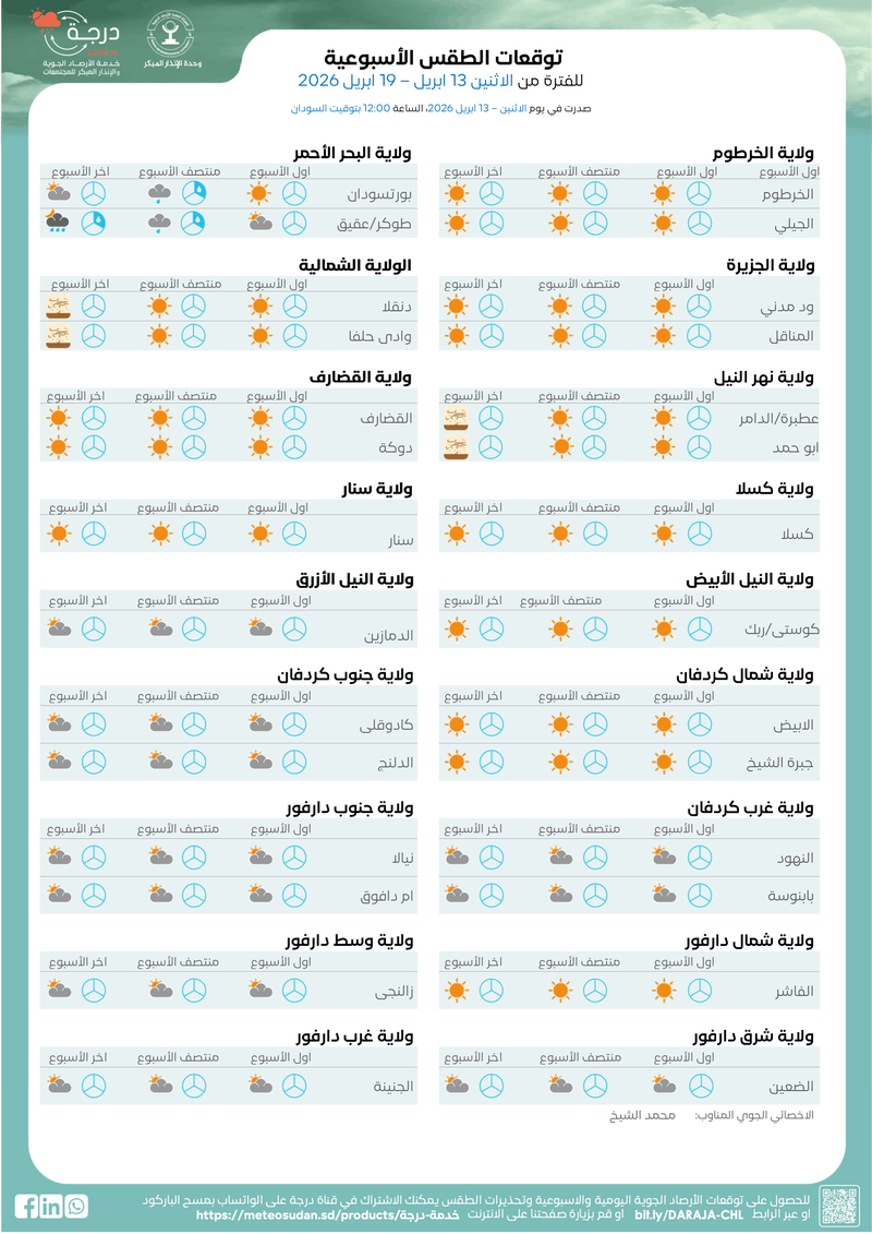 🕘 يوم الاثنين 13 ابريل 2026، الساعة 12:00 بتوقيت السودان