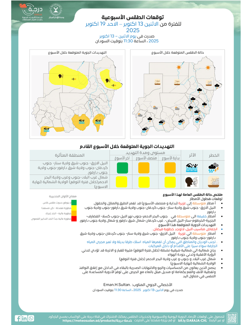 التوقعات الاسبوعية لاحوال الطقس في الفترة من (13-19) اكتوبر 2025 م