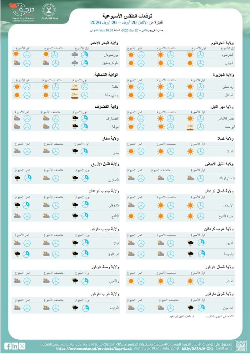 🕘 يوم الإثنين 20 أبريل 2026، الساعة 10:00 بتوقيت السودان