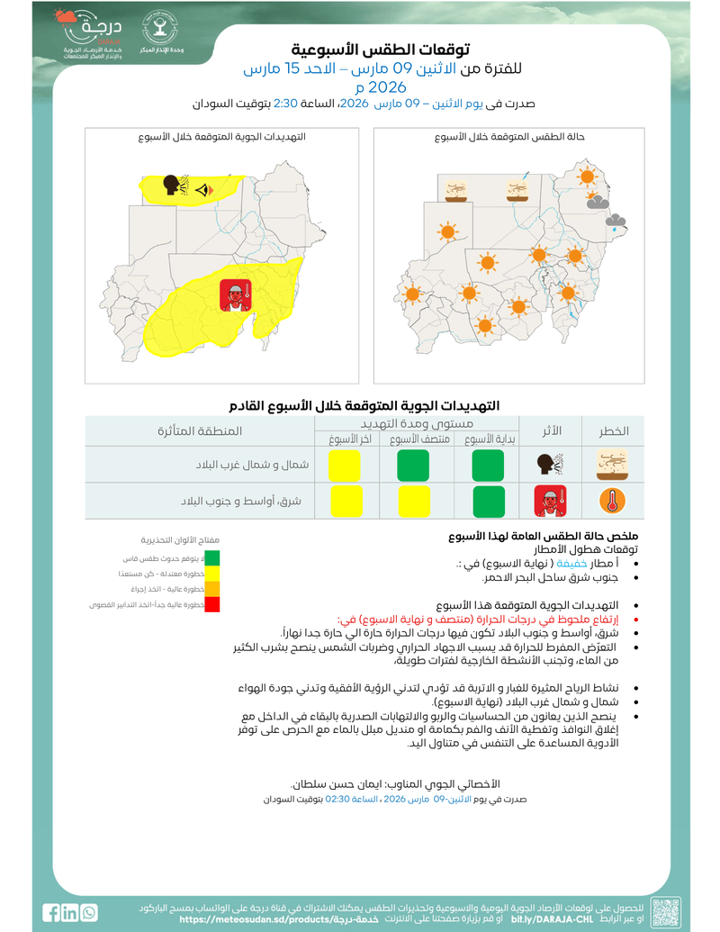 أصدرتها الهيئة العامة للأرصاد الجوية السودانية