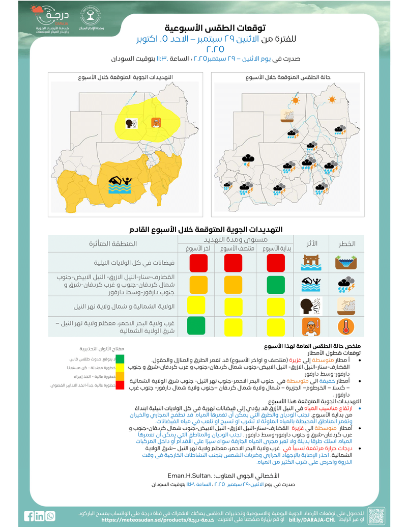 أصدرتها الهيئة العامة للأرصاد الجوية السودانية