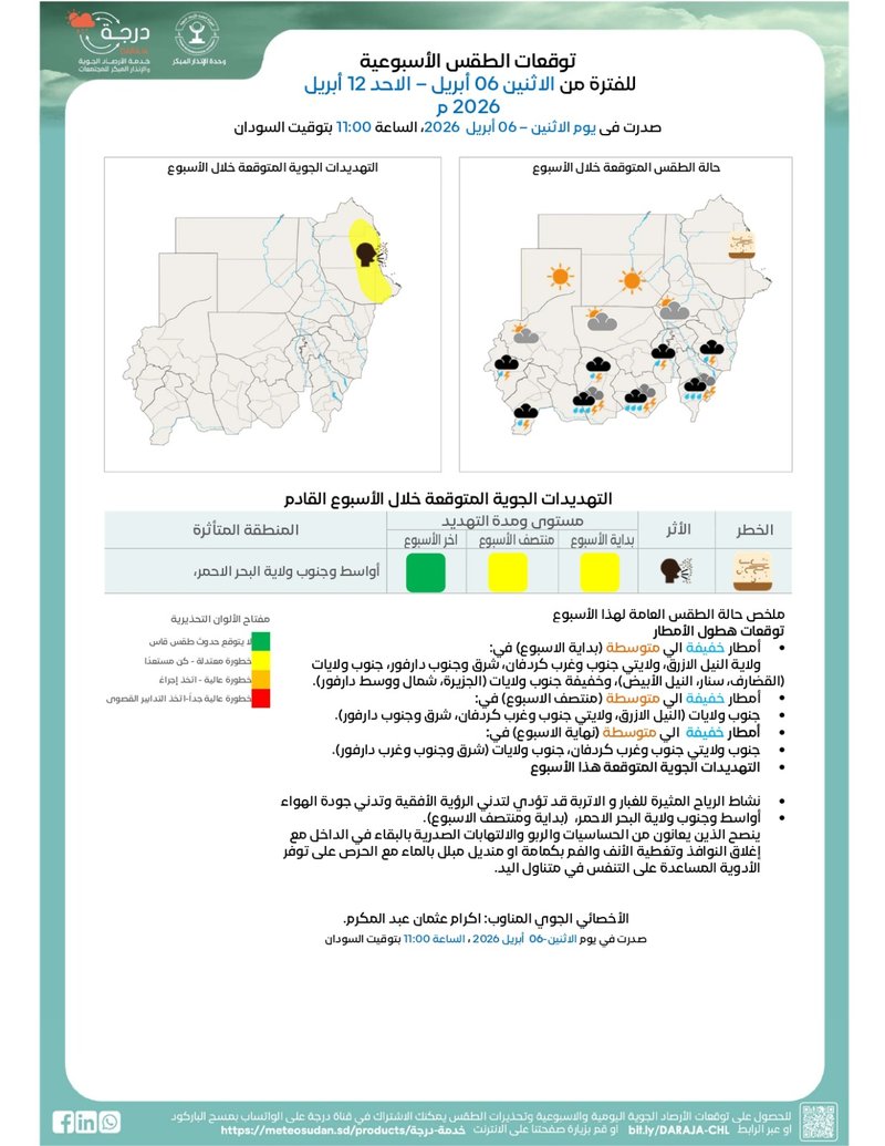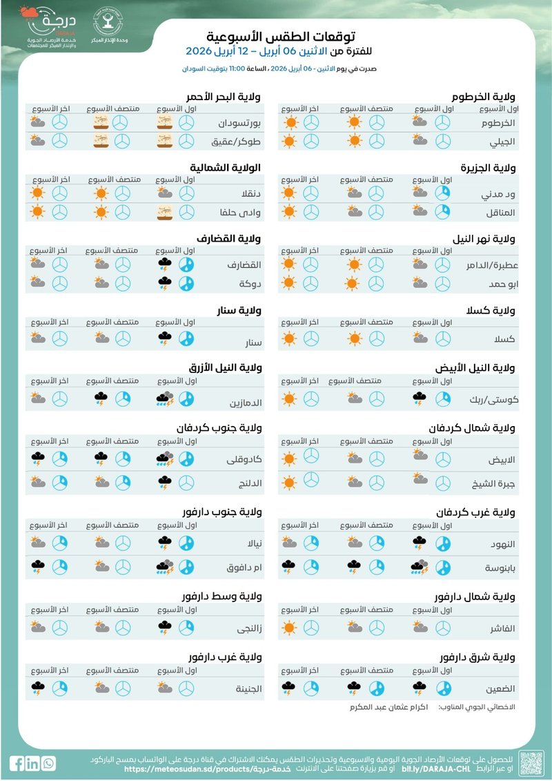 🕘 يوم الاثنين 06 أبريل 2026، الساعة 11:00 بتوقيت السودان